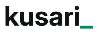 - Le mot-symbole s’affiche en « kusari_ » : « kusari » en Inter gras et un underscore « _ » en vert signal (#00C897), en police monospace.